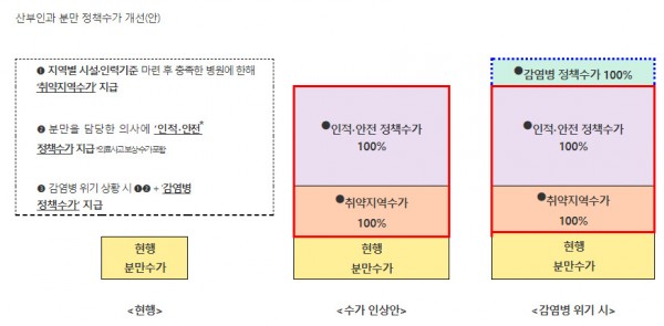 - 특히 감염병 위기 상황에는 감염병 정책수가(현행 분만수가의 100%)를 지급한다.