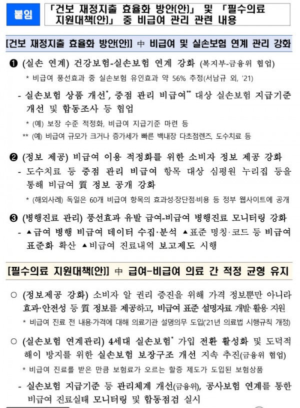 #붙임: 「건보 재정지출 효율화 방안(안)」 및 「필수의료 지원대책(안)」 중 비급여 관리 관련 내용