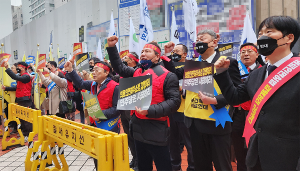 3월 9일 오전 7시 20분 여의도 더불어민주당사 앞에서 ‘간호법·면허박탈법 저지를 위한 13개 단체 보건복지의료연대’ 집회가 있었습니다.