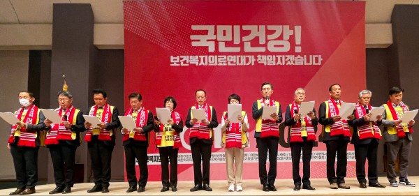 보건복지의료의 미래는 대한민국의 미래와 분리할 수 없습니다. 우리는 보건복지의료인이기 이전에 대한민국 국민입니다. 400만 보건복지의료인은 대한민국의 올바른 미래를 그리면서 모두 한마음으로 전진해 나갈 것입니다.
