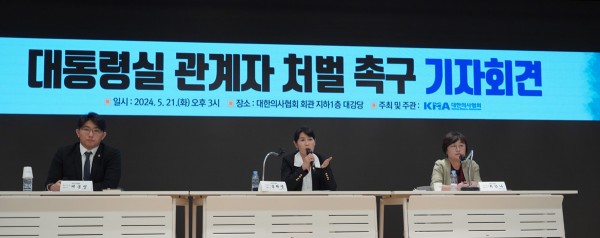 이에 대해 대한의사협회는 매우 강한 유감을 표명하며, 의-정간 대화의 물꼬를 트기는커녕 아예 틀어막아버리는 대통령실 관계자와 박민수 차관에게 합당한 처벌을 해주실 것을 대통령님께 요청드립니다.