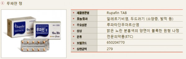 새로운 항히스타민제 Rupafin(루파핀 Rupatadine) 정