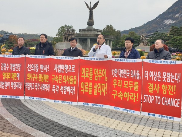 최대집 회장은 “최선의 의료행위에도 불구하고 나쁜 결과가 나왔다고 해서 의사에게 금고형을 선고하고 1심에서 법정 구속한 것은 우리 헌정 사상 초유의 사태다. 사법부의 만행이고 망동이며 법치주의의 파괴다. 의료계는 절대 사법부와 검찰의 만행을 용납할 수 없다”고 말했다.