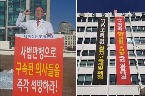 대한의사협회 최대집 회장은 이날 서울시 용산구에서 신축 공사 전의 옛 의협회관에서 고공시위를 통해 이같이 말했다.