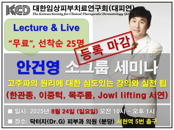 [마감]안건영 소그룹 세미나 (고주파를 이용한 한관종, 이중턱, 목주름 치료).8/24(일)