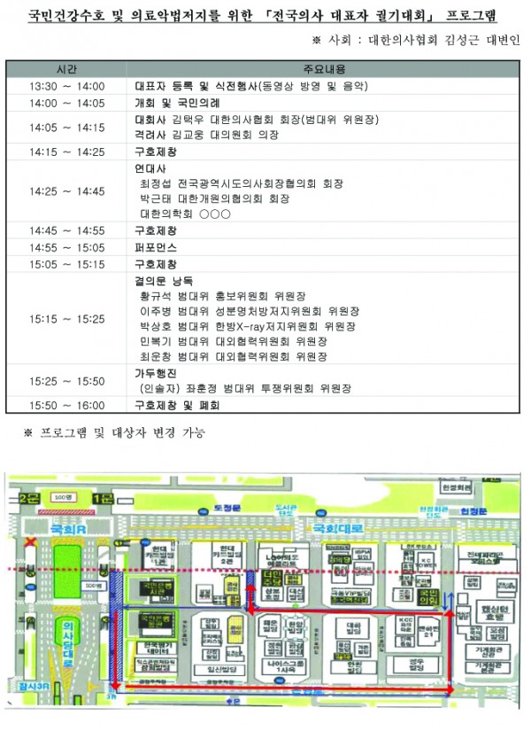 ▶행사명: 국민건강수호 및 의료악법 저지를 위한 ‘전국의사 대표자 궐기대회’