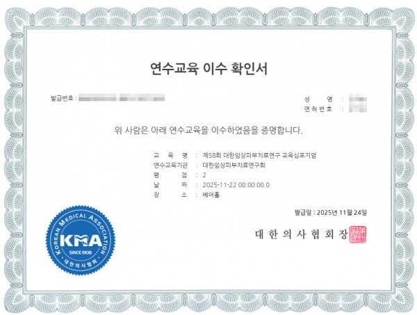 대한임상피부치료연구회(대피연)은 의협 공식 연수교육기관입니다.