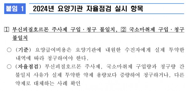 [복지부]2024년 요양기관 자율점검 실시(steroid부신피질호르몬 주사제 구입·청구 불일치)