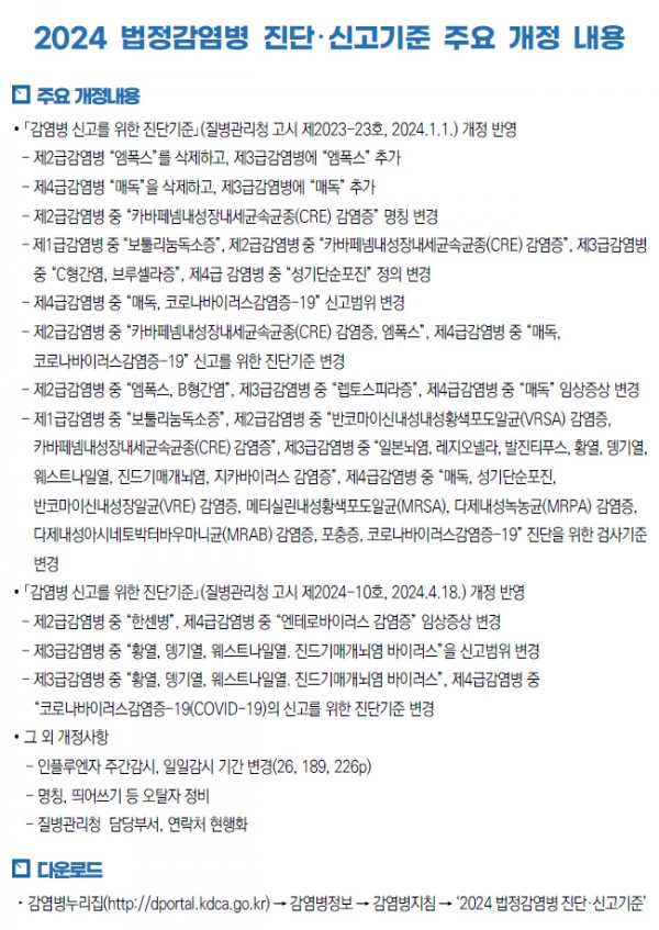 - 첨부파일: 2024법정감염병 진단·신고기준 지침.pdf (6.6M)168