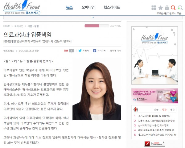 - 헬스포커스뉴스 칼럼: 대한임상피부치료연구회 법제이사 김동희 변호사