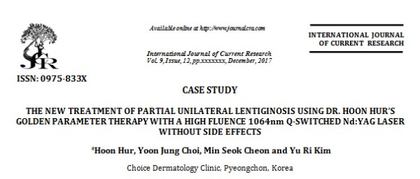 THE NEW TREATMENT OF PARTIAL UNILATERAL LENTIGINOSIS USING DR. HOON HUR’S GOLDEN PARAMETER THERAPY WITH A HIGH FLUENCE 1064nm Q-SWITCHED Nd:YAG LASER WITHOUT SIDE EFFECTS