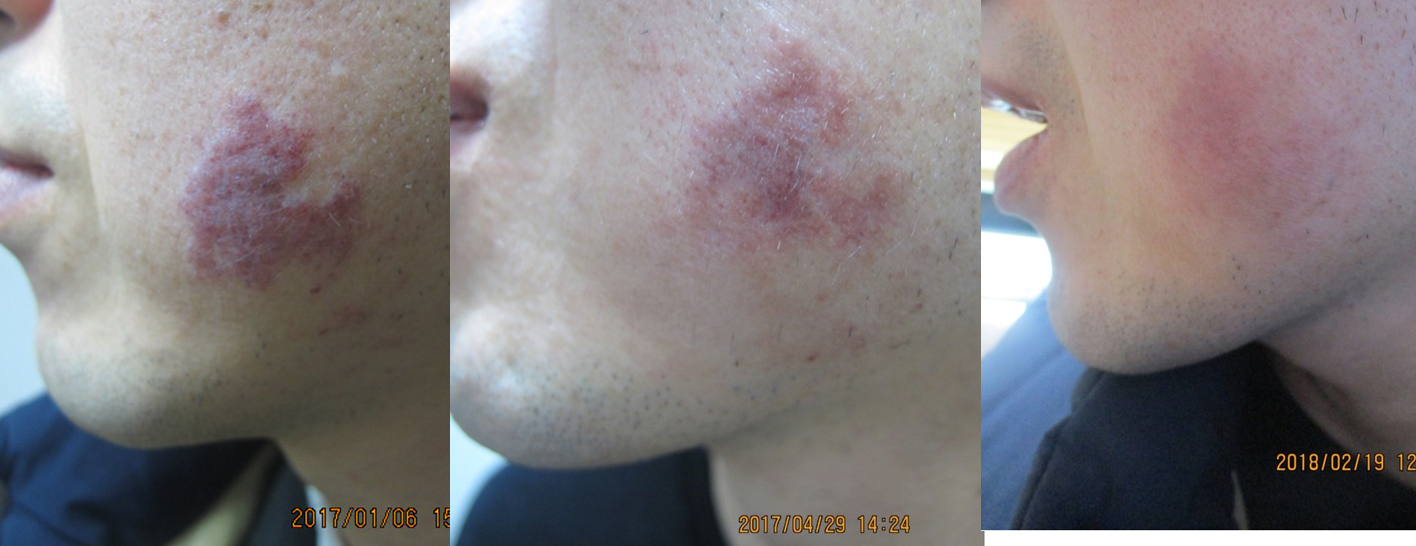 2)하지만 vascular laser를 가지고, 인중부위의 모세혈관확장증과 같은 혈관성 병변을 치료하다가 부작용으로 skin ulseration이 발생하면 인중부위임에도 hypertrophic scar가 발생하는 것이 아니라 atrophic scar가 발생한다. 왜냐하면 vascular laser가 상처부위에 영양분을 공급하는 feeding vessel을 파괴하게되고, 상처부위에 영양공급을 못하게 되면, fibroblast의 migration과 proliferation이 일어나지 못하고 atrophic scar가 남게되기 때문이다.