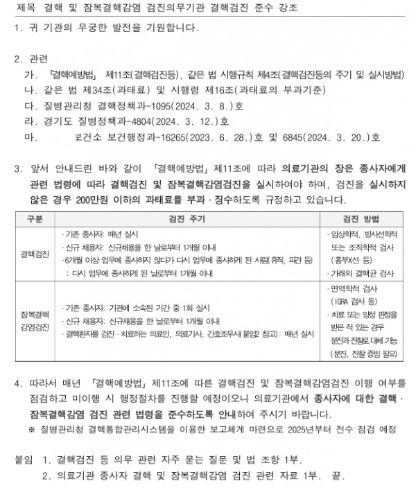 [질병청]결핵 및 잠복결핵 검진의무기관 결핵검진 준수(검진 주기, 검진 방법)과태료200만원