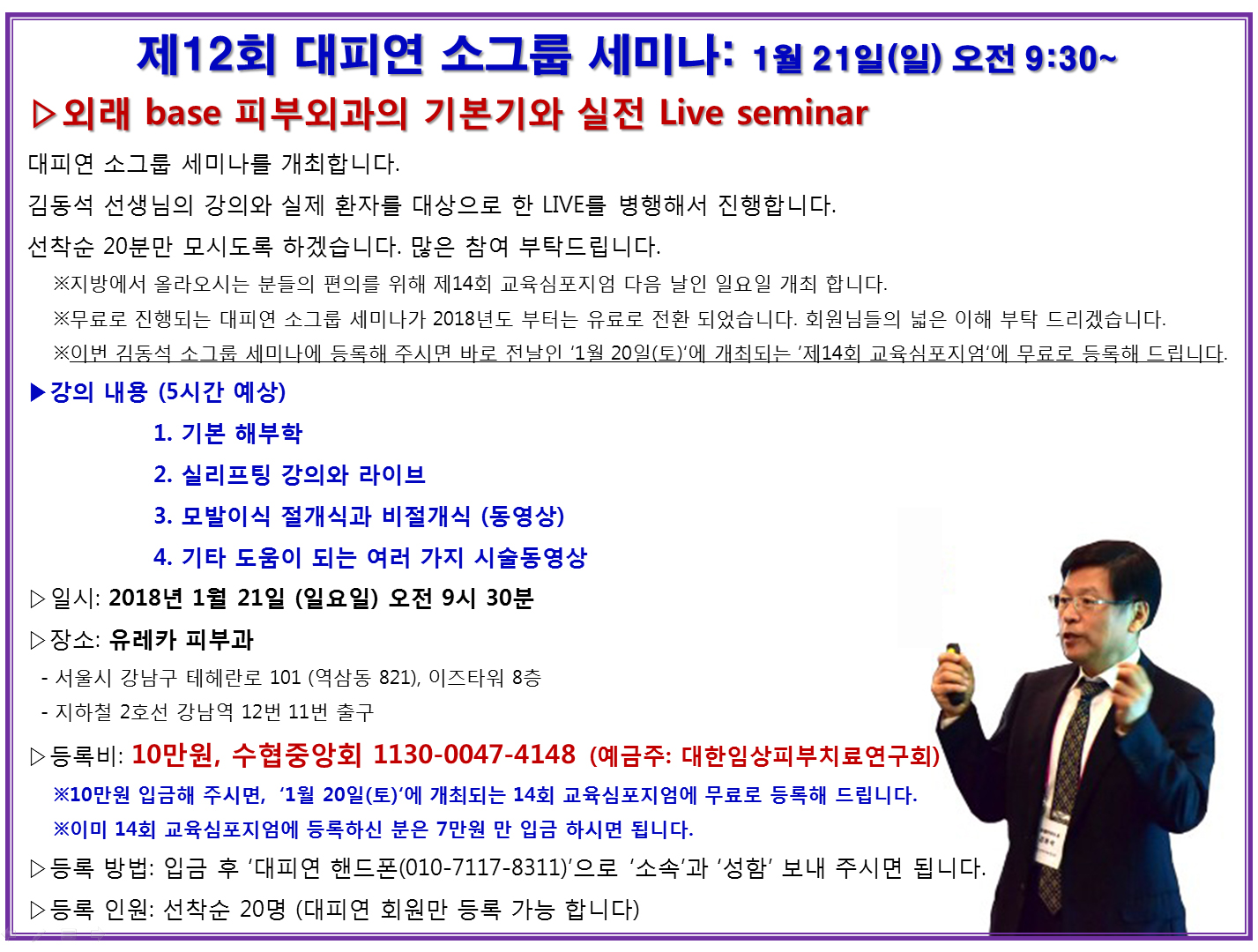 ▷등록비: 10만원, 수협중앙회 1130-0047-4148 (예금주: 대한임상피부치료연구회)
