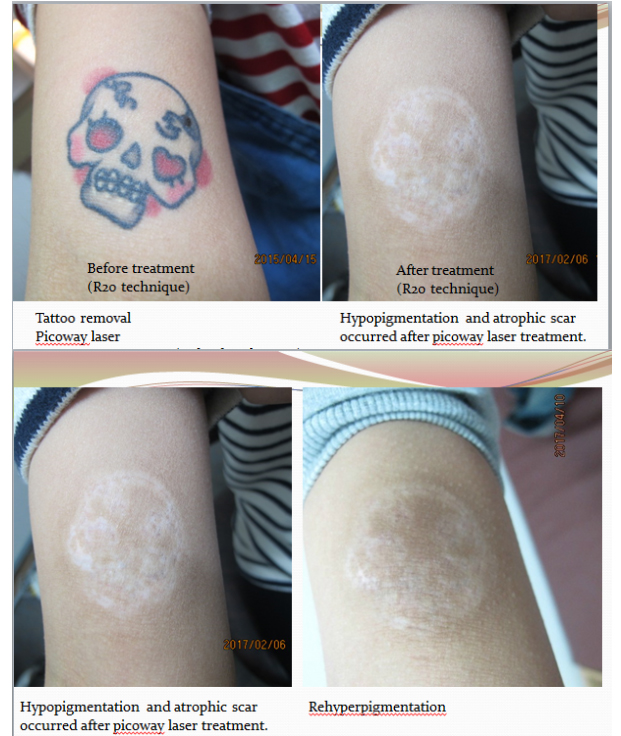 1)첫 번째 사진: R20 또는 R5 technique을 사용 후 hypopigmentation과 atrophic scar가 발생한 case