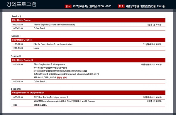 ▷이 외에도 김동석 선생님의 SST season II와 박일중 선생님의 색소 강의에서도 우리가 시술하면서 궁금해 하는 부분들을 집중 강의해 주실 예정입니다.