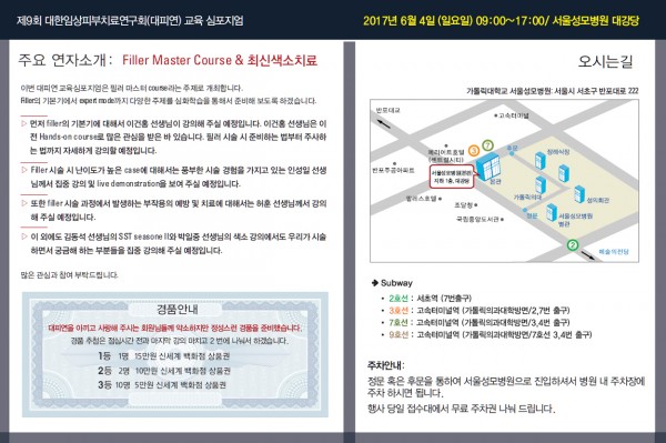 이번 교육심포지엄은 ‘Filler master course’라는 주제로 강의 및 live demonstration을 위하여 ‘서울성모병원’에서 개최하게 되었습니다.