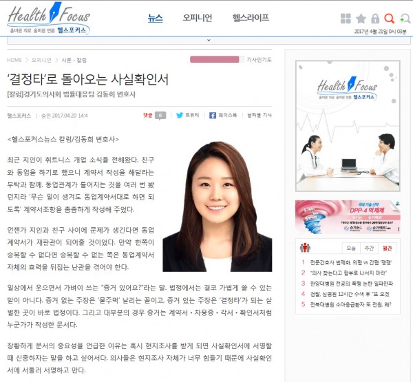 사실확인서 서명이 불리한 증거로 작용해 패소하는 사례를 접하면 변호사도 속상하다. 물론 사실확인서에 서명을 거부하는 것이 대단한 용기가 필요하고 사실상 어려운 일이라는 것은 잘 알고 있다. 그러나 현지조사를 받는 것도, 향후 행정처분을 받는 것도 전부 의료인 본인이기 때문에 신중할 것을 거듭 강조하고 싶다.