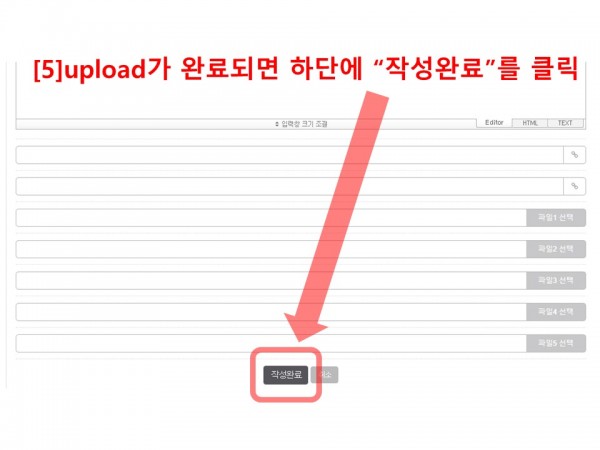 [5] upload가 완료되면 하단에 “작성완료”를 클릭 합니다.