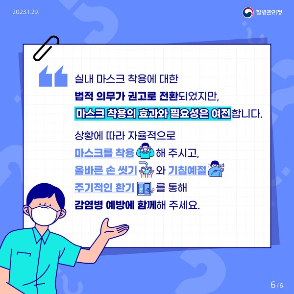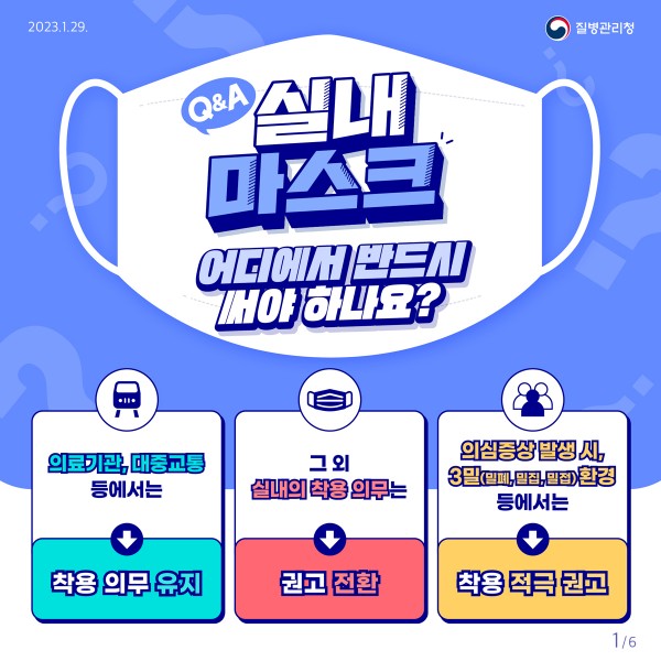 Q&A 내 마스크 어디에서 반드시 써야 하나요? (2023.1.29. 질병관리청)