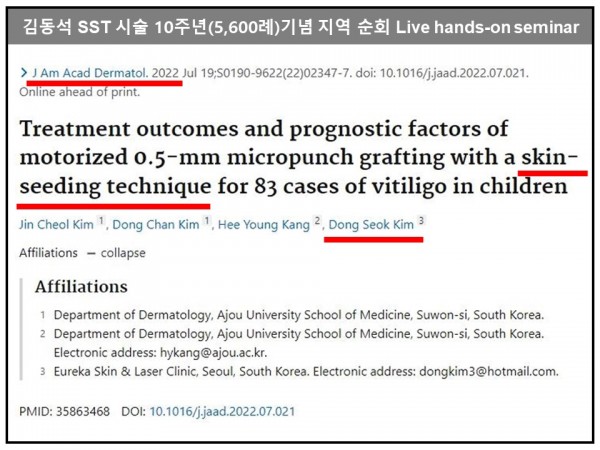 ▷김동석 명예회장 백반증 치료 논문 ‘SST (Skin Seeding Technique)’ 제목으로 JAAD에 게재: