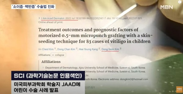 이 수술법을 개발한 김동석 박사는 어린이 백반증 환자 83명을 치료한 결과를 올해 SCI 최고 등급 학술지에 발표했습니다.