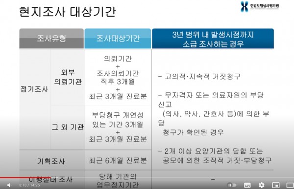 [동영상]현지조사(1/3).현지조사.방문심사.방문확인 차이점/단 한 건의 민원만으로도 조사 받나?/사전통지 없는 조사(심평원.의협)