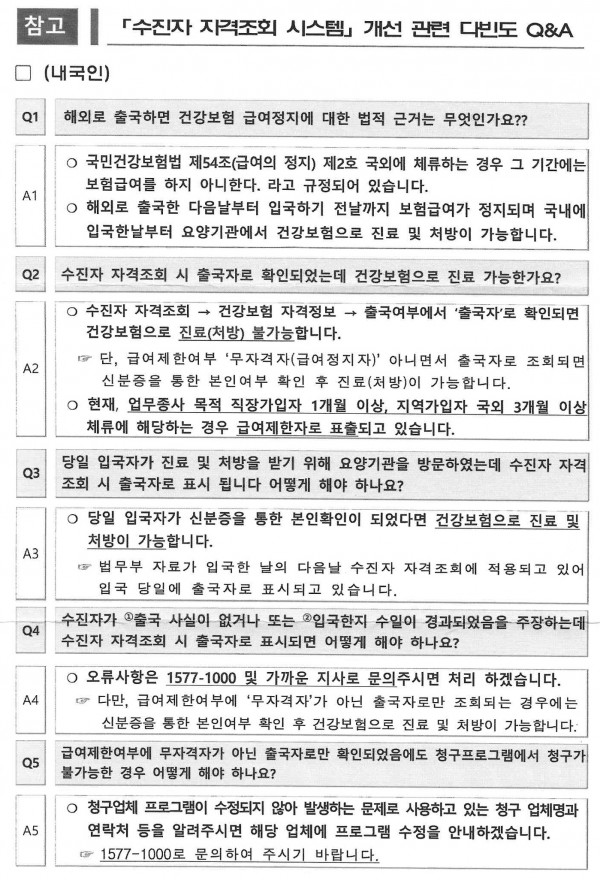 [건보공단]요양기관 정보마당 내 ‘수진자 자격조회 시스템’ 개선(출국일 다음날부터 출국자로 표시, 건보적용 불가)