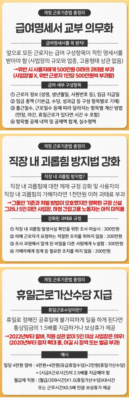[노무]새롭게 시행되는 개정된 근로기준법 총정리 대피연 메일보내기 이름으로 검색 0 10,629 2021.12.20 12:17 첨부파일 - 첨부파일: 근로기준법11.jpg (471.5K) 155 - 첨부파일: 근로기준법12.jpg (415.7K) 125 - 첨부파일: 근로기준법13.jpg (326.6K) 128 짧은주소 - 짧은주소: https://www.laserpro.or.kr:443/bbs/?t=9fj 주소복사 × 짧은 글주소 복사 Note! 위 주소를 드래그, 복사(Ctrl+C)하여 사용하세요. 이전글다음글 목록 본문 [노무]새롭게 시행되는 개정된 근로기준법 총정리 이전글다음글 목록 댓글목록 등록된 댓글이 없습니다.