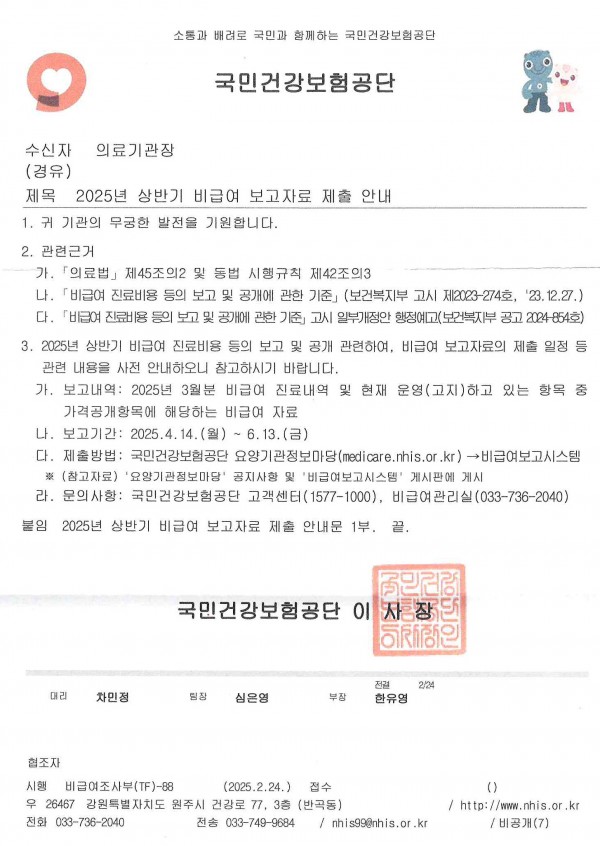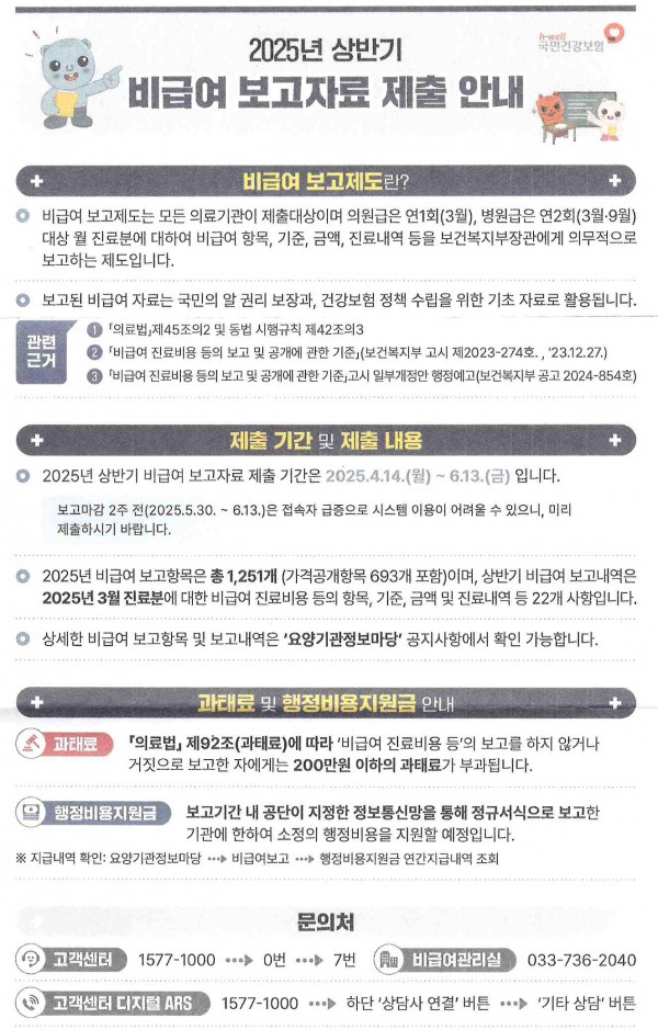[건보공단]2025년 상반기 비급여 보고자료 제출 안내(6.13.마감)