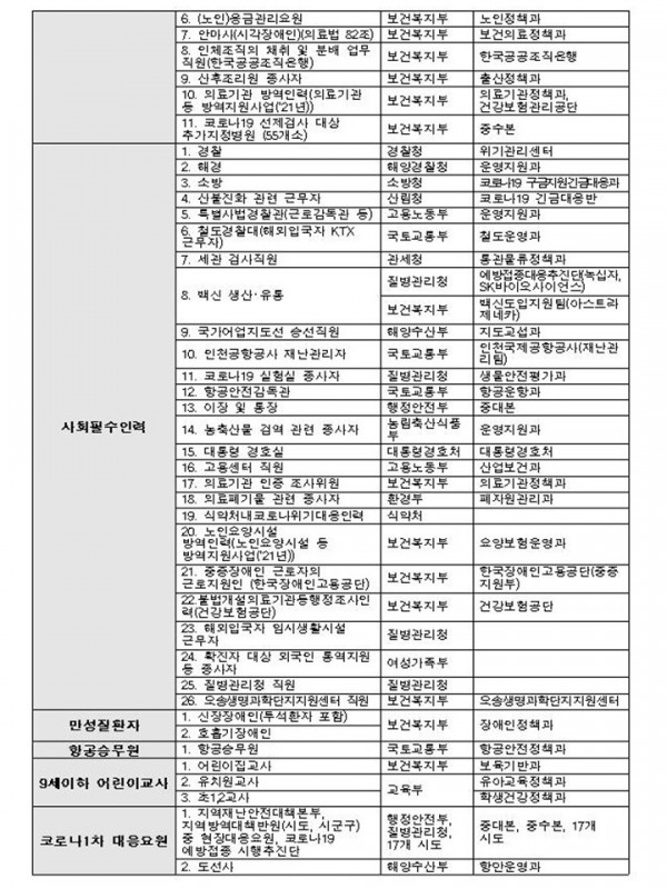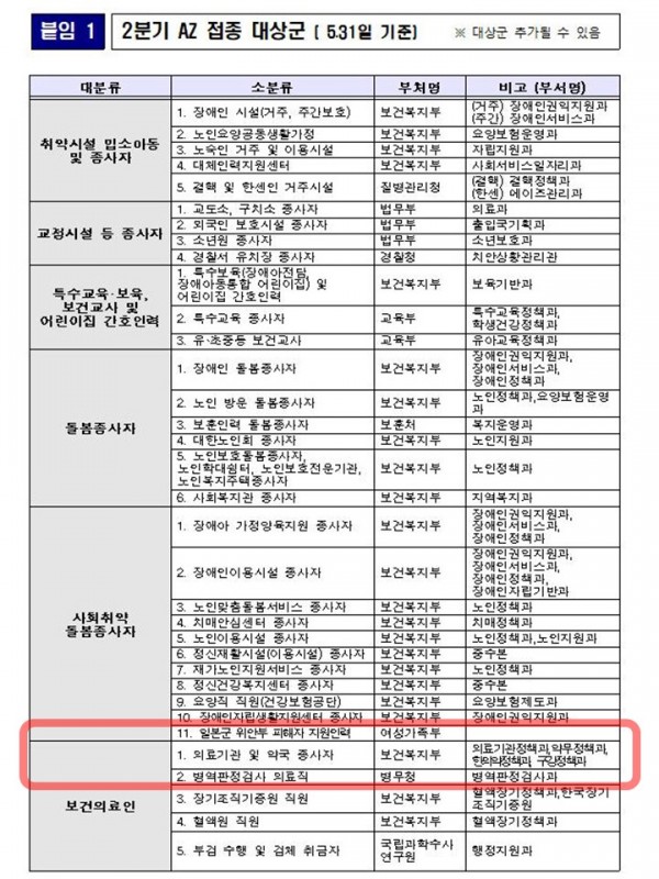 cf) [질병청]30세 미만 ’2분기 접종대상자(사회필수인력)‘ 화이자 백신 접종 예정