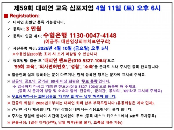 제59회 대피연 교육심포지엄.4/11(토)6PM베어홀