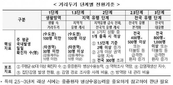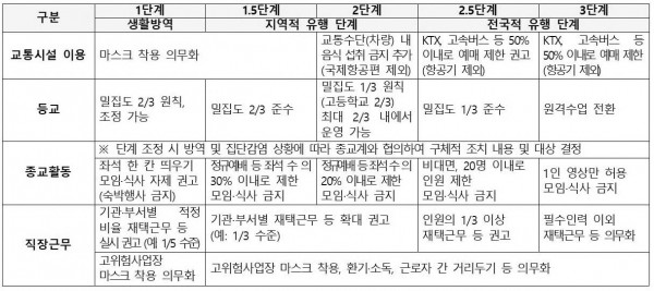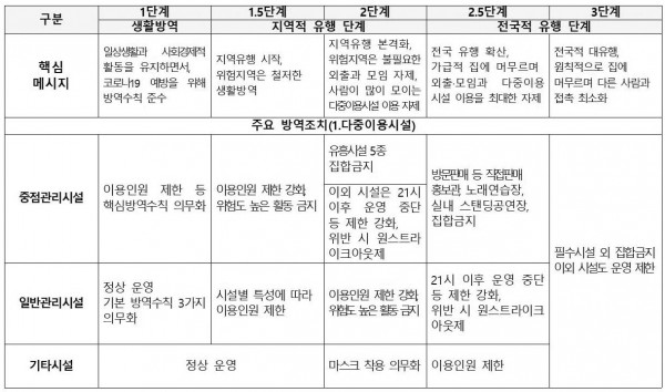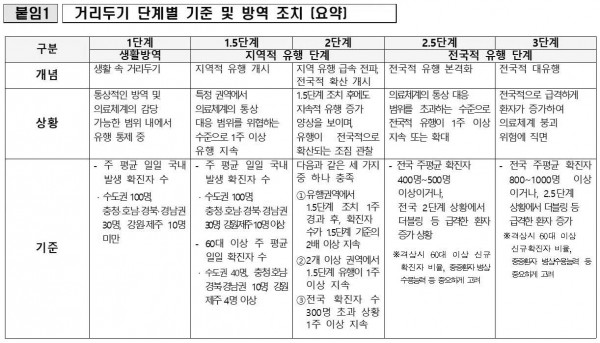 먼저, 기존의 3단계를 보다 세분화하되, 현장에서의 혼란을 최소화하기 위해 단계별 명칭은 국민에게 익숙한 1.5단계, 2.5단계 등을 사용한다.