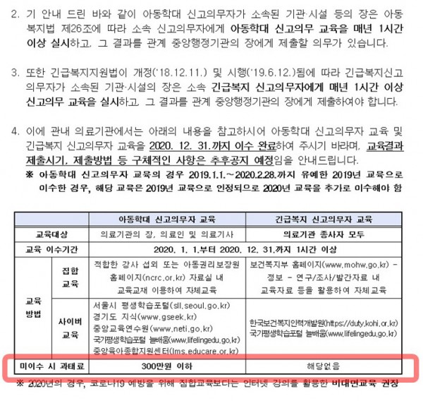 최근 지자체에서 의료기관으로 ’아동학대 신고의무자 교육‘과 ’긴급복지 신고의무자 교육’을 이수하여 보고하라는 공문이 내려오고 있습니다.