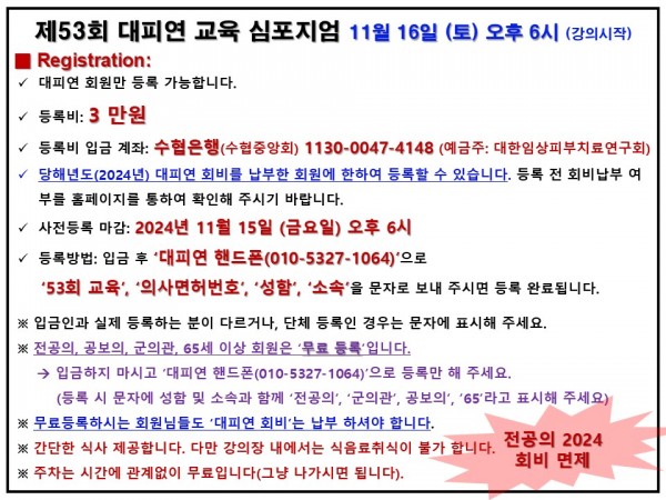 ▶제53회 대피연 교육심포지엄 경품 안내 (전공의: 등록비·회비 무료, 5만원 상품권 증정)