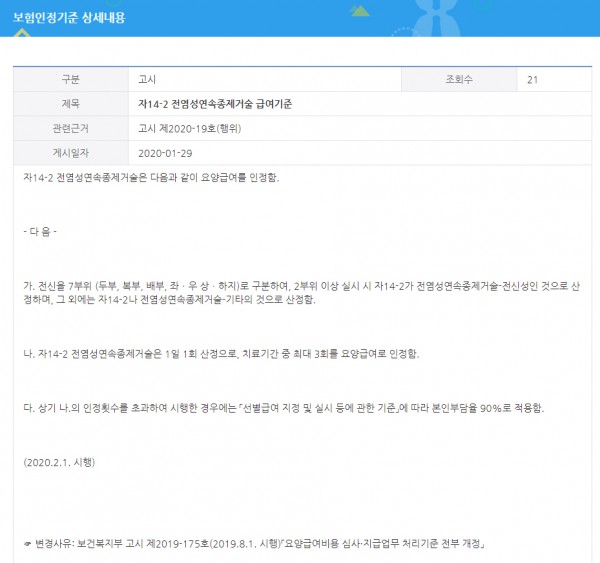 2020년 2월 1일부터 전염성연속종 제거술 급여기준 변경이 되었습니다.
