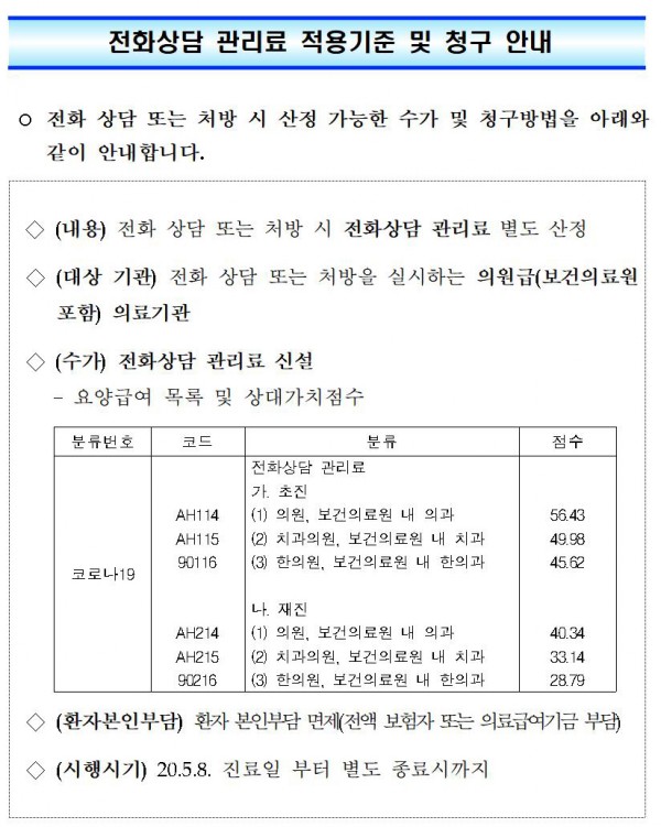 - (수가) 전화상담 관리료 신설 ※ 상세내역은 첨부파일 참조.