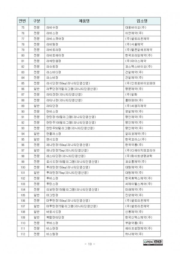 □ 해당 의약품을 처방 받은 환자분들 중에서 안전에 우려가 있는 분들은 종전에 처방을 받은 병‧의원을 방문*하여 해당 의약품 포함여부 문의 및 위궤양치료제의 추가 복용 필요성 여부를 의료진과 상담하여 주시기 바랍니다.