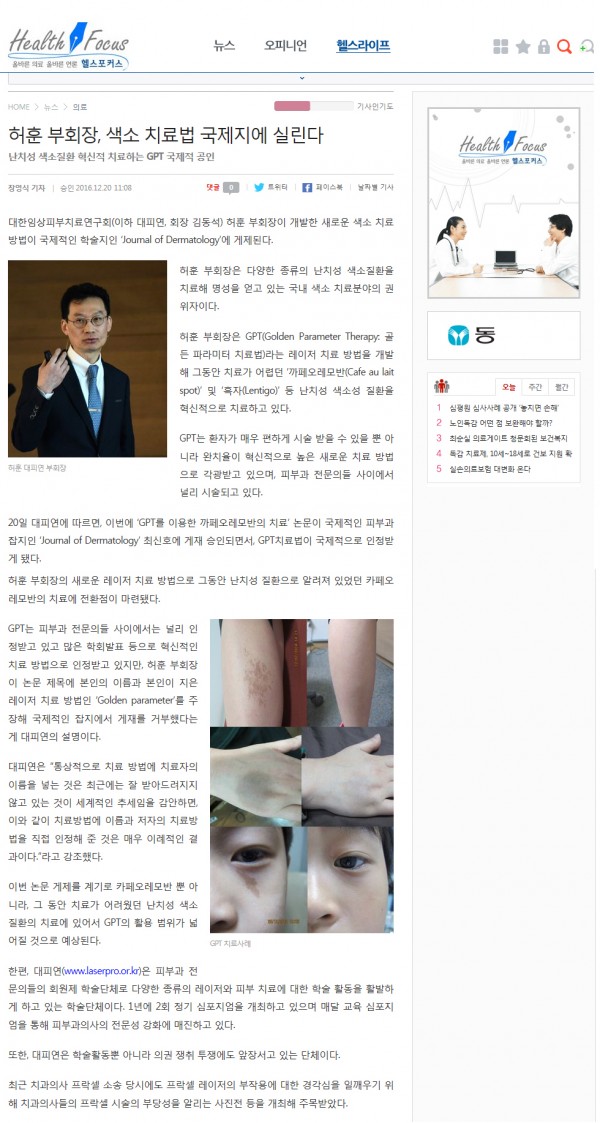 허훈 부회장, 색소 치료법 국제지에 실린다난치성 색소질환 혁신적 치료하는 GPT 국제적 공인