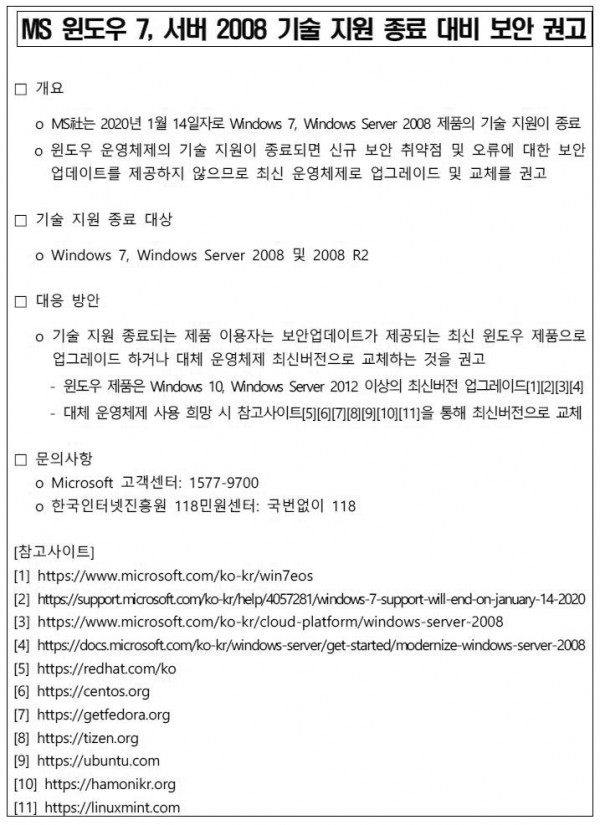 [보안]MS 윈도우 7 운영체제 기술지원 종료에 따른 보안 대책