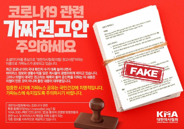 - 의협, "엄중한 시기에 가짜뉴스 공유는 국민건강에 치명적" 주의 당부
