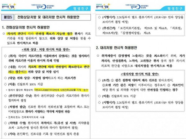 (내용) 의사의 의료적 판단에 따라 안전성이 확보된다고 판단되는 경우에는 전화 상담 및 처방 실시