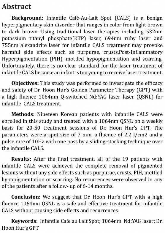 Tx of Infantile CALM c Dr. Hoon Hur’s GPT with high fluence 1064 nm Nd:YAG