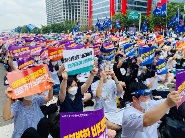 우리 13만 의사들은 이처럼 의료계의 등에 칼을 꽂는 정부의 독선에 좌절했고, 더 이상 좌절만 하고 있을 수 없기에 분노했으며, 그 분노의 불길은 삽시간에 전 의료계로 번졌습니다. 결국 진료실 문을 닫고 거리로 나설 수밖에 없는 선택에 의료계 각 지역, 직역 의사 회원들이 잇달아 성명을 내어 적극적인 지지와 동참의 의지를 보여주셨습니다. 이 뜨거운 지지와 동참의 열기는 회원님들이 참여하신 설문조사와 의협 대의원회의 서면결의를 통해서도 그대로 드러난 바 있습니다.