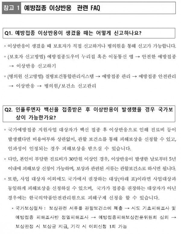 [질병관리청]인플루엔자 백신 접종 이상반응 현황 및 이상반응 발생 시 대응책
