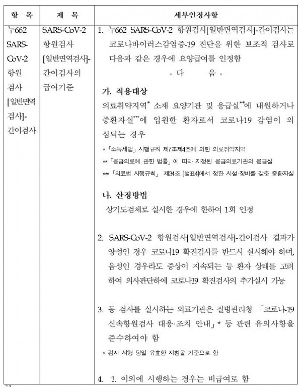 2. (주요내용):코로나19 신속항원검사 요양급여 적용 (선별적으로 적용)