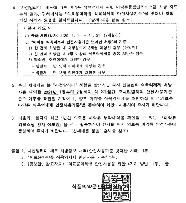 [식약처]식욕억제제(마약류) 처방시 유의사항