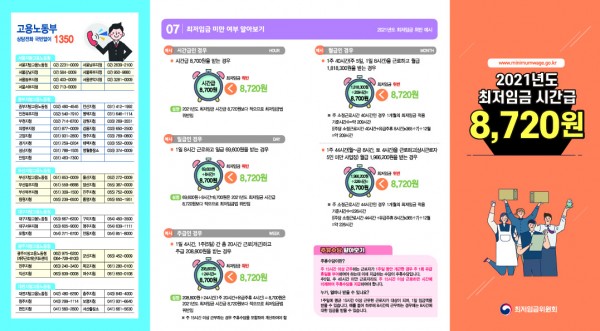 [노동부]2021년도 최저임금 ‘8,720원’(월 1,822,480원, 최저임금계산기)