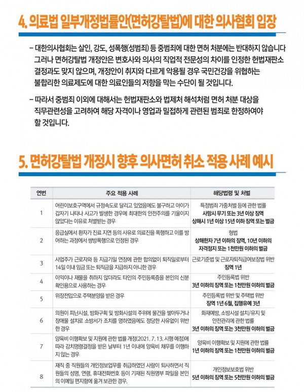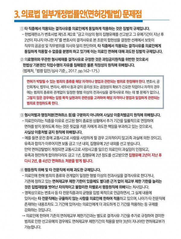 [의협]‘의료인 면허취소법’의 문제점(의료인 면허취소 징벌적 확대저지 회원 홍보자료)