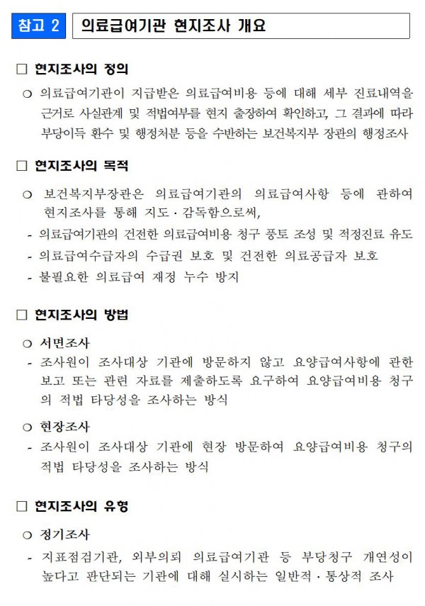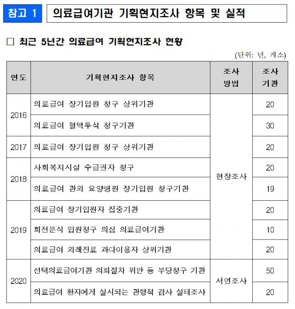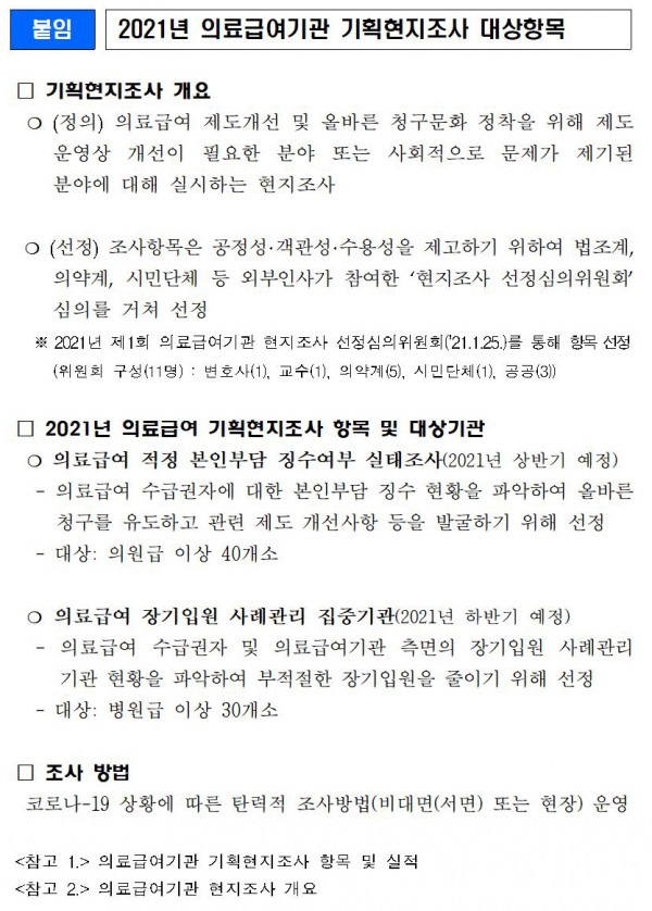 ▷주요내용: 2021년 의료급여 기획현지조사 항목 및 대상기관